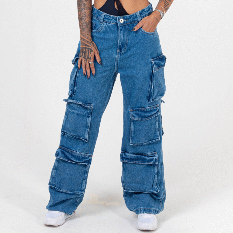 Calça Cargo Jeans com 8 Bolsos