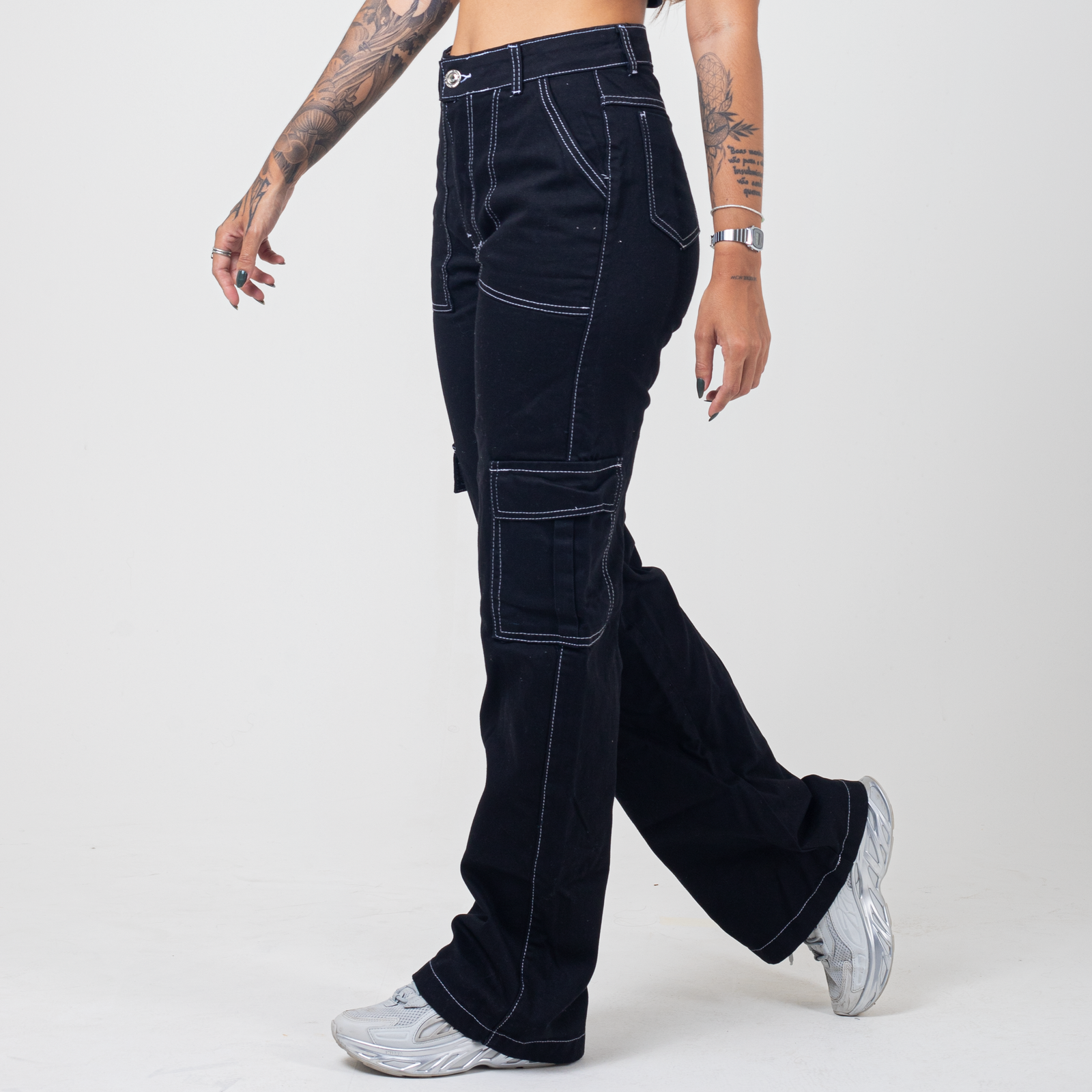 Calça Cargo Preta com Pesponto
