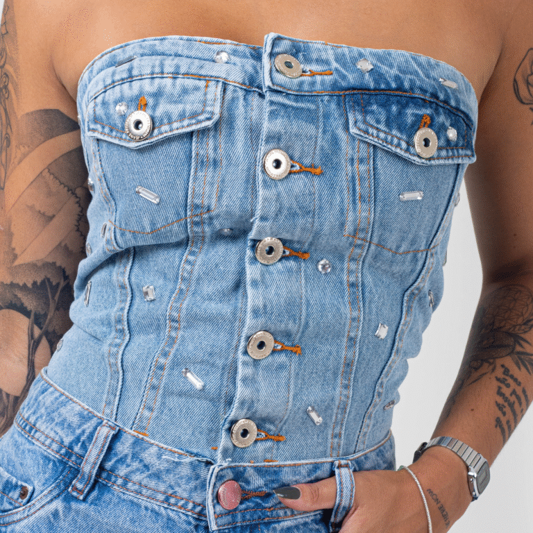 Cropped Corset Jeans com Aplicações